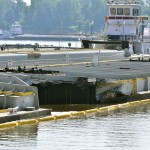 Damage on a barge is seen as it is moored along the Kentucky shore of the Mississippi River at Columbus-Belmont State Park in Columbus, Ky., Thursday, Sept. 3, 2015. A tow, seen in the background, traveling north on the river struck the barge as it was traveling south across the river. The Mississippi River has been closed to barge traffic because the damaged barge leaked … [Read more...]