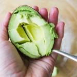 1 Cut avocado, remove flesh: Cut the avocados in half. Remove seed. Score the inside of the avocado with a blunt knife and scoop out the flesh with a spoon. (See How to Cut and Peel an Avocado.) Place in a bowl. … [Read more...]