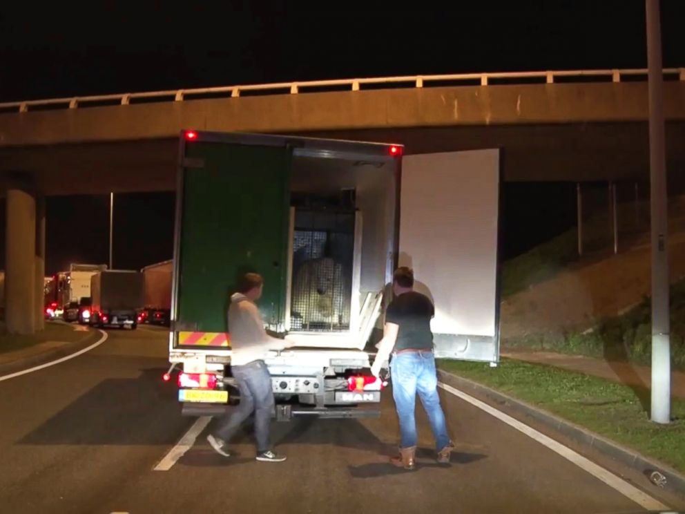 A group of migrants who were trying to get to the U.K. from France thought they would hitch a ride on green truck, but they were in for a surprise when they opened the back. Rather than just some boxes of standard cargo, the men opened the back of the truck at a slow point in traffic to realize that there was a polar bear inside.